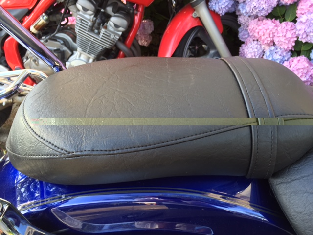 Nieuwe zadel overtrek met de langsnaden verwijderd en de achternaad is nu afwaterend genaaid